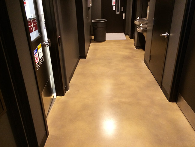 The client discussed the possibility of ripping up the concrete and pouring new concrete but after meeting with Floorcare USA, Inc., out of Waukesha, WI it was determined there was a better and more efficient method to beautiful concrete floors: Decorative Concrete Overlay system.