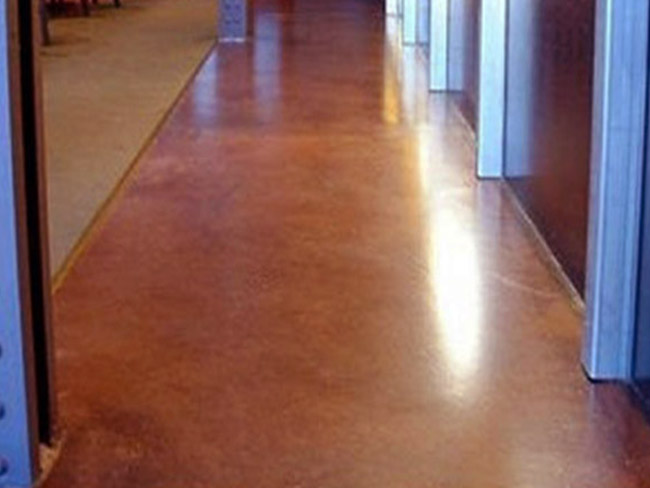 First the concrete floors were mechanically diamond grinded included all edges, then patching and joint filling was done so the floors were then ready for the concrete stain.