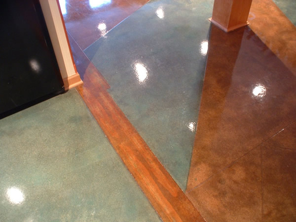 This home owner wanted a beautiful, artistic, one of a kind floor that had all the durability and performance that a concrete epoxy coated flooring system provides with the unique features of a concrete stain process.