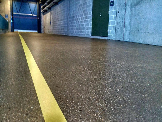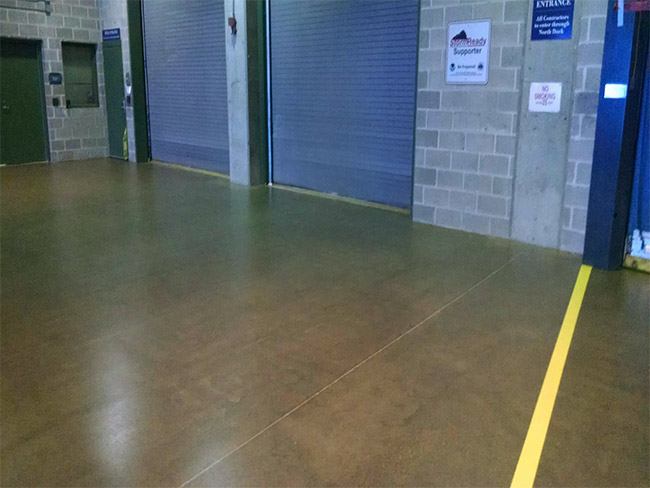The stadium now has floors that are all the things you want in an epoxy, urethane concrete coated flooring system: durable, high traction, easy to clean and very beautiful.