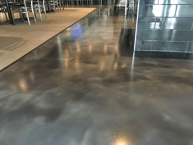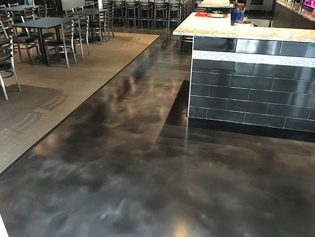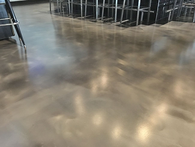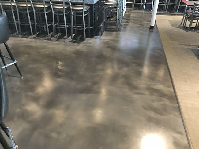 By adding the uniqueness of the metallic pigment system to an epoxy coated concrete floor system you achieve a floor that looks as good as it performs. On this particular Madison, WI bar and restaurant project the client desired those performance appearance aspects.