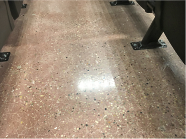 First Floorcare USA removed the old, existing floor coverings, then diamond grinded and prepped the concrete to remove old adhesives and residue. Once the concrete surface was properly prepped, Floorcare performed a TRUE REFINEMENT concrete diamond grind process that exposed salt and pepper aggregate. They then performed a sequential diamond polish process up to 800 grit levels.