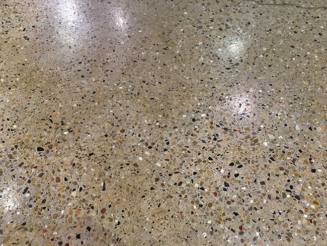 A finished polished concrete floor resists moisture and rot in order to eliminate concerns about the growth of hazardous mold and mildew. The proprietary fluids used to chemically hardens and densifies the concrete surface. This permanent treatment safely and dramatically increases the durability and life expectancy of the concrete floor, while also having minimal impact on the environment.