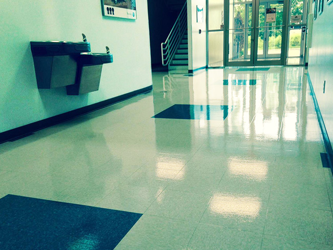 A Floorcare USA client was tired of the quarterly expense of stripping their VCT, then reapplying the wax to keep their hallways looking good.