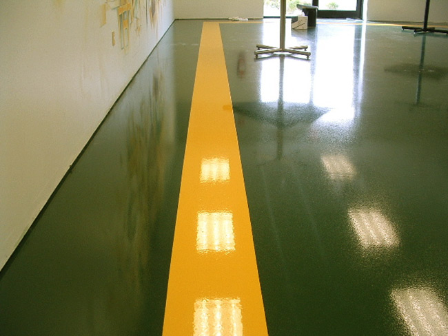 The project made for a one of a kind concrete epoxy flooring system with the high wear characteristics that come with an industrial urethane top coat.